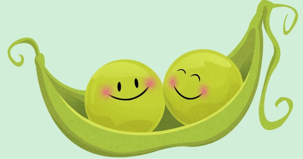 Like two peas in a pod เป็นสำนวนที่ใช้เปรียบเทียบสิ่งของสองสิ่ง หรือ คนสองคน ว่ามีลักษณะที่เหมือนหรือคล้ายคลึงกันจนแทบแยกไม่ออกราวกับเมล็ดถั่วลันเตาที่อยู่ในฝักเดียวกัน โดยสำนวนภาษาอังกฤษนี้จะตรงกับสำนวนไทยที่ว่า “เหมือนกันราวกับแกะ”